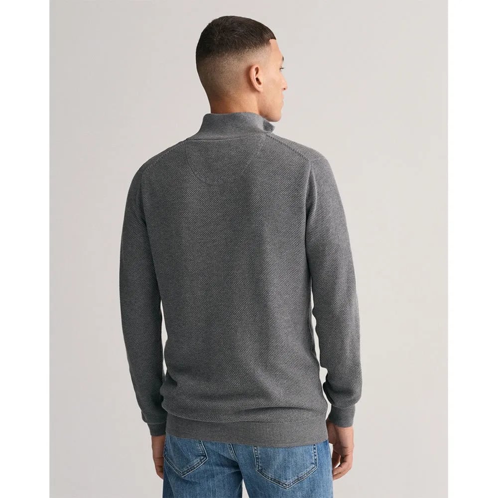 Gant Mens Half Zip Jumper in Grey Cotton - Size X-Large