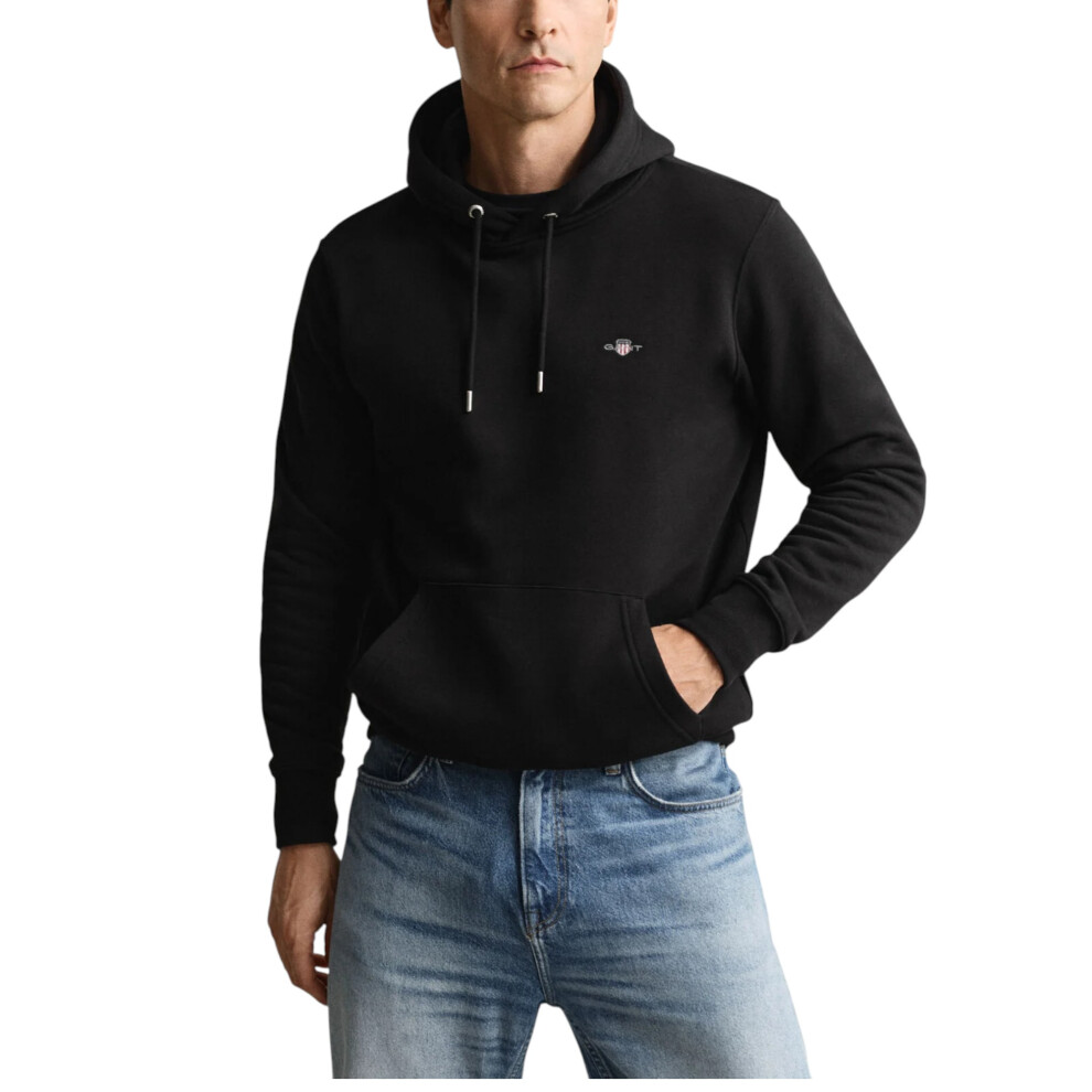 (Black, M) Gant Mens Hoodie Reg Shield Pullover Long Sleeve Hooded Sweatshirts Winter Top