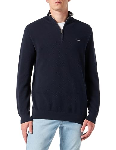 Gant Mens Textured Cotton Half-Zip Jumper in Blue - Size 4XL