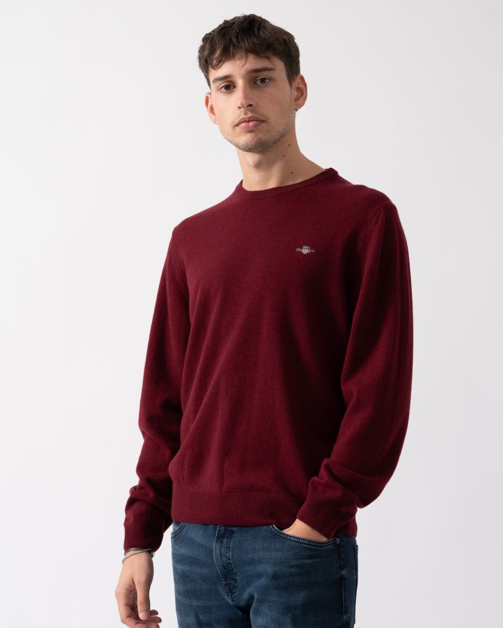 Gant Mens Superfine Lambswool Crew Neck Jumper - Red Cotton - Size X-Large
