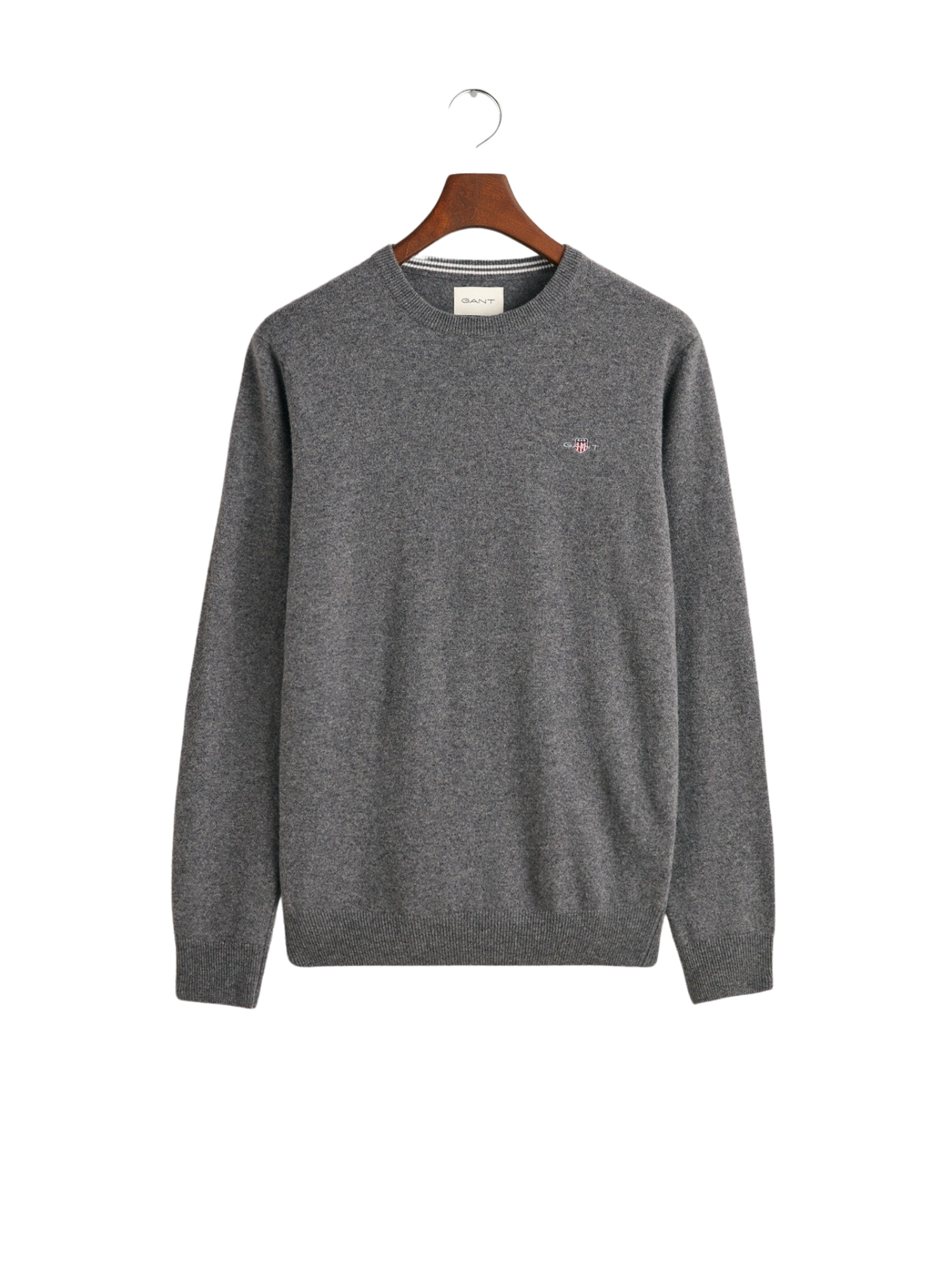 Gant Mens Superfine Lambswool Crew Neck Jumper - Grey Wool (archived) - Size Medium