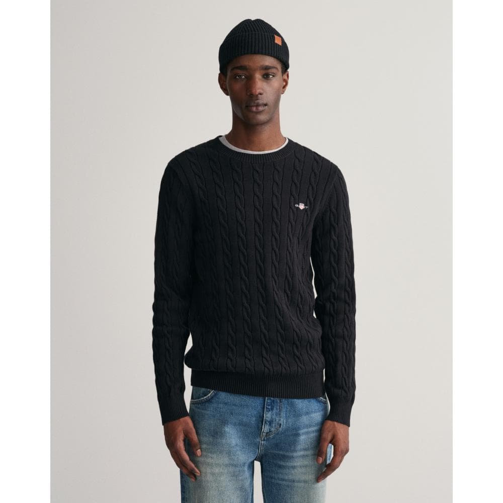 Gant Mens Cotton Cable Knit Crew Neck Jumper - Black - Size Small
