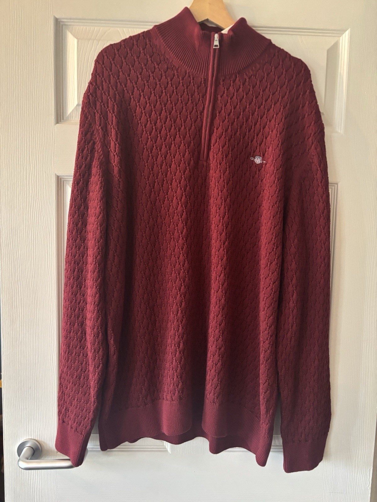 Gant Textured Half Zip Jumper, Burgundy, XXXL
