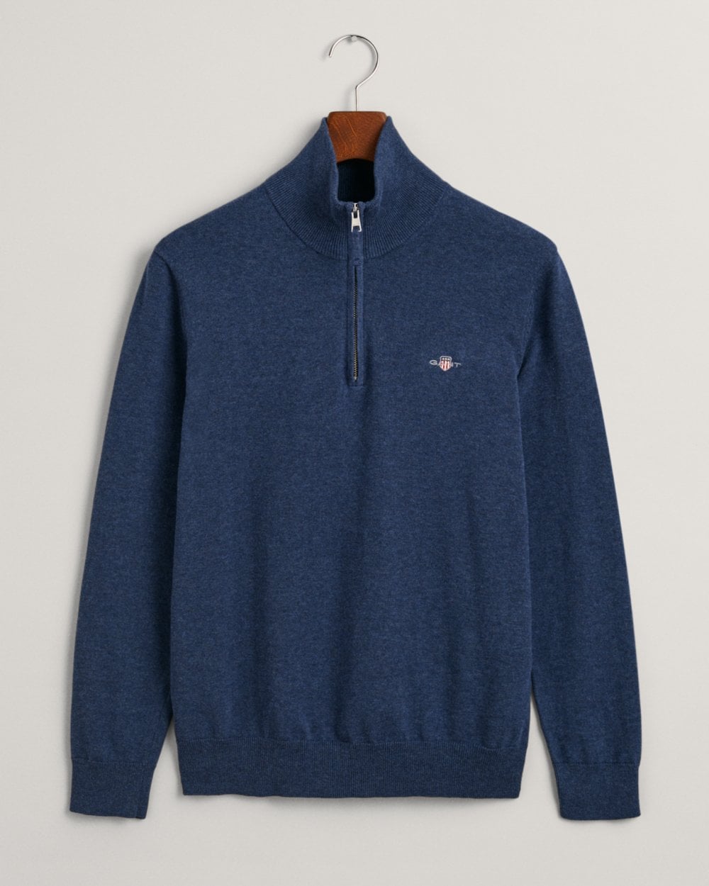 Gant Mens Classic Cotton Half zip Jumper - Dark Blue - Size Large