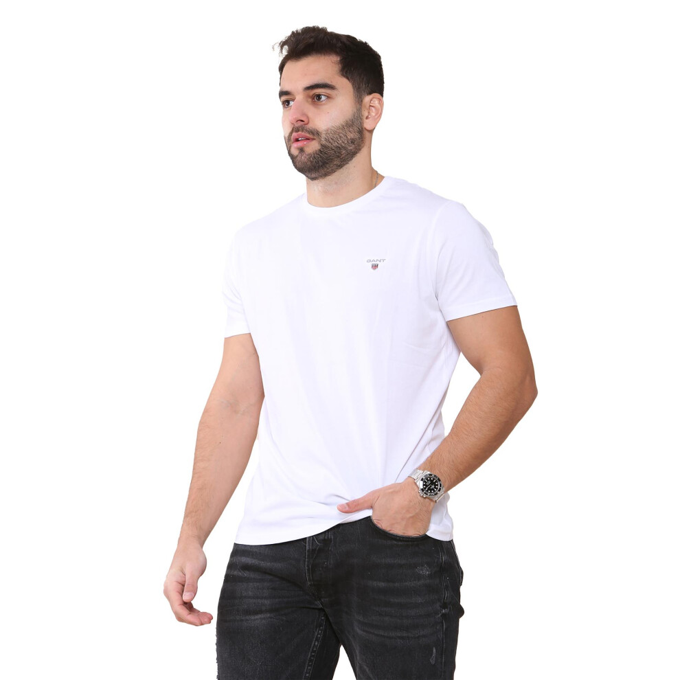 (White, XL) Gant Mens Contrast logo Crew Neck T-shirt