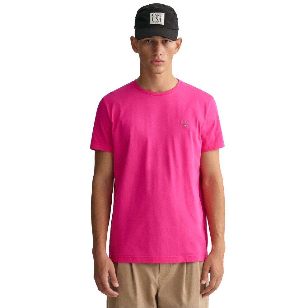 (Pink, M) Gant Mens Contrast logo Crew Neck T-shirt