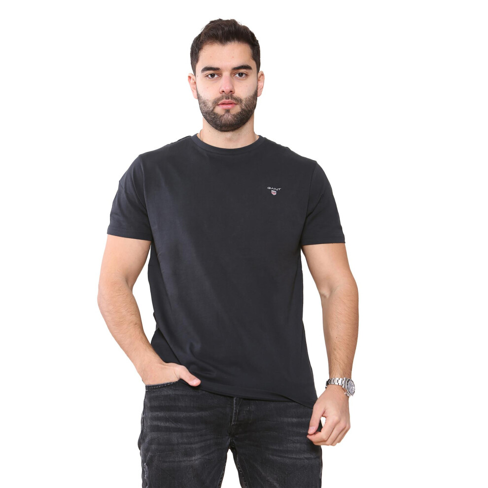 (Black, L) Gant Mens Contrast logo Crew Neck T-shirt