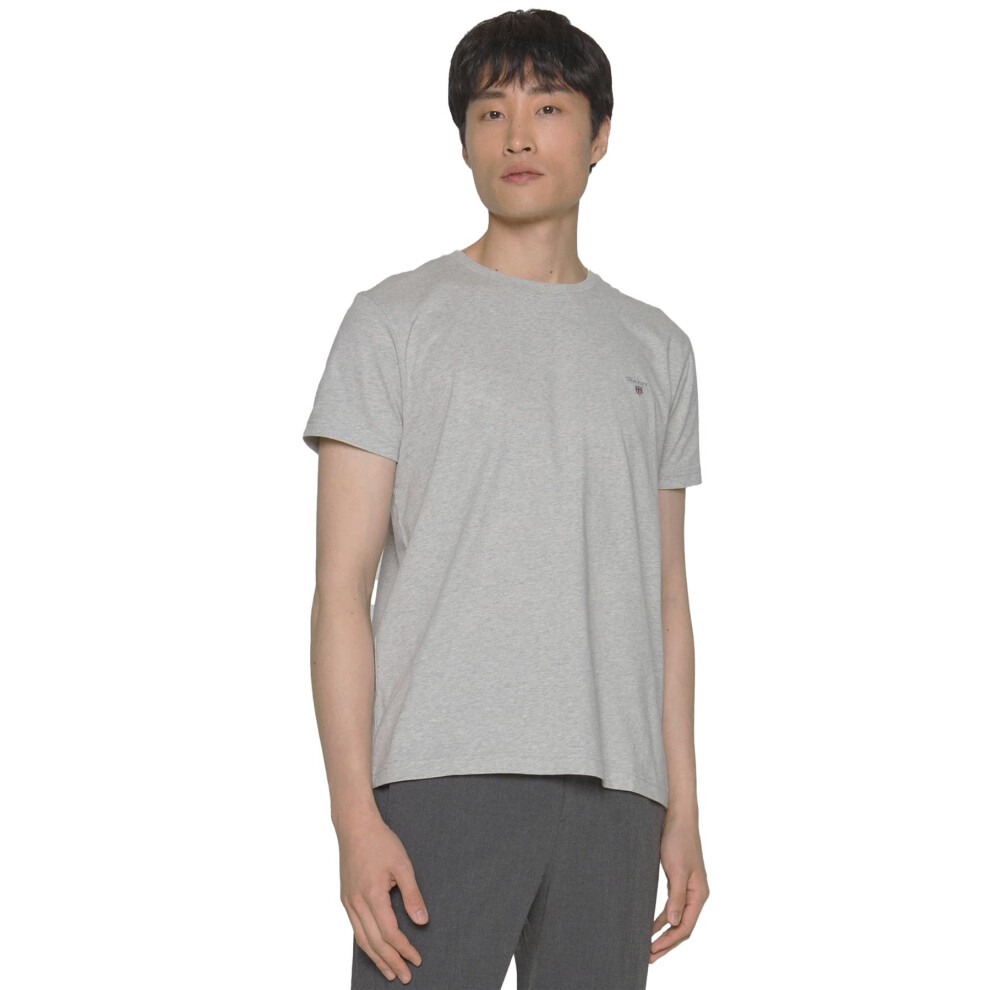 (Grey, XL) Gant Mens Contrast logo Crew Neck T-shirt
