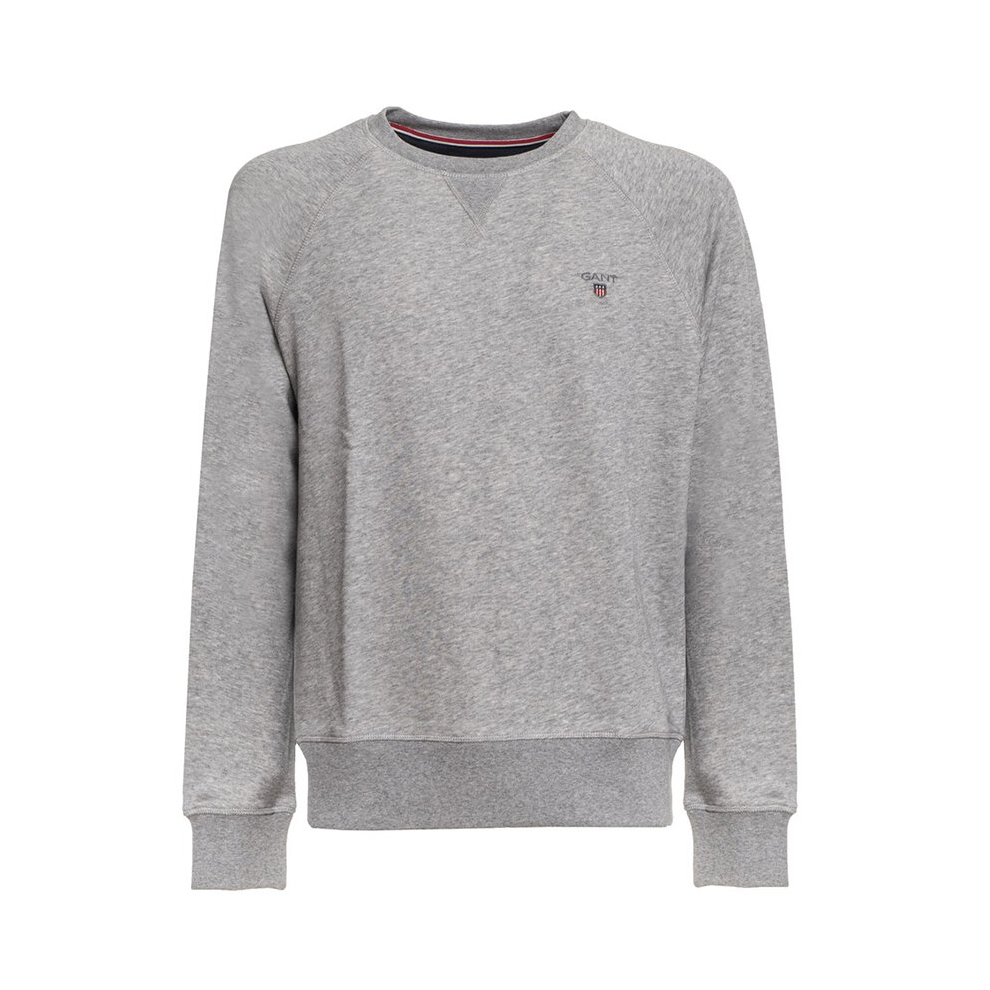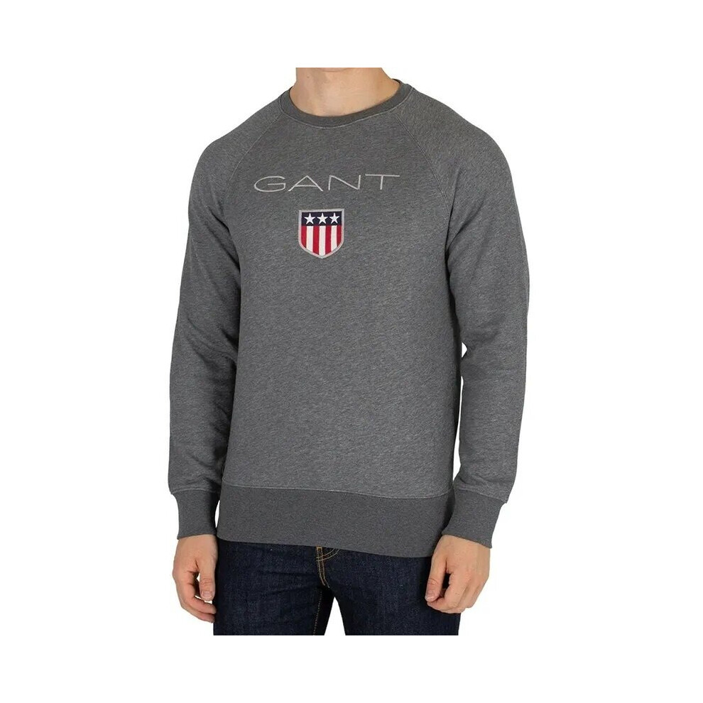 (Grey Melange, M) GANT Small SHIELD LOGO Mens Crew Neck Sweatshirt