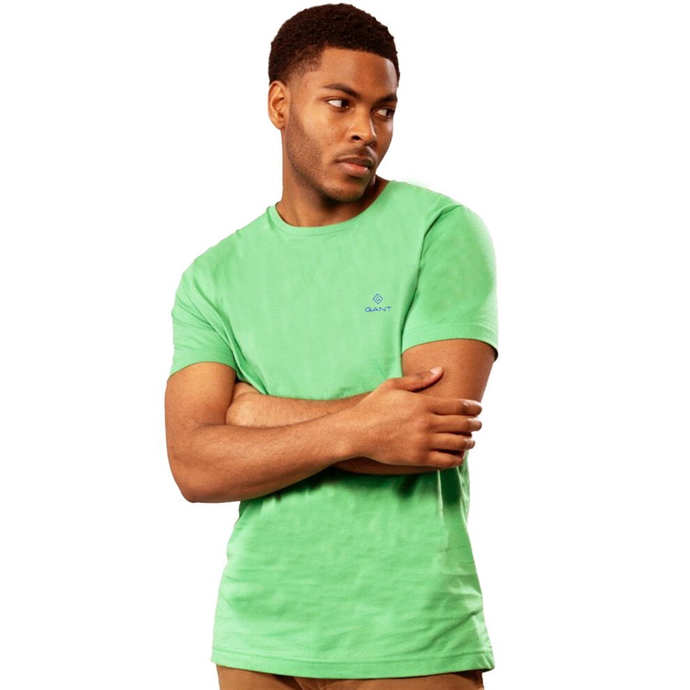(Green, M) Gant Mens Contrast Logo Crew Neck T-Shirt