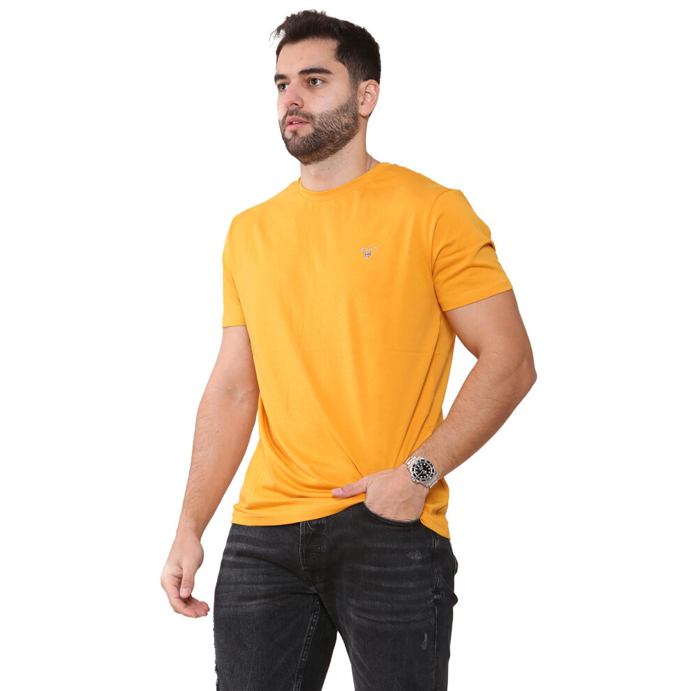 (Gold, M) Gant Mens Contrast logo Crew Neck T-shirt