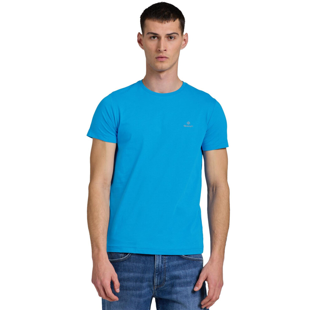 (Light Blue, M) Gant Mens Contrast Logo Crew Neck T-Shirt
