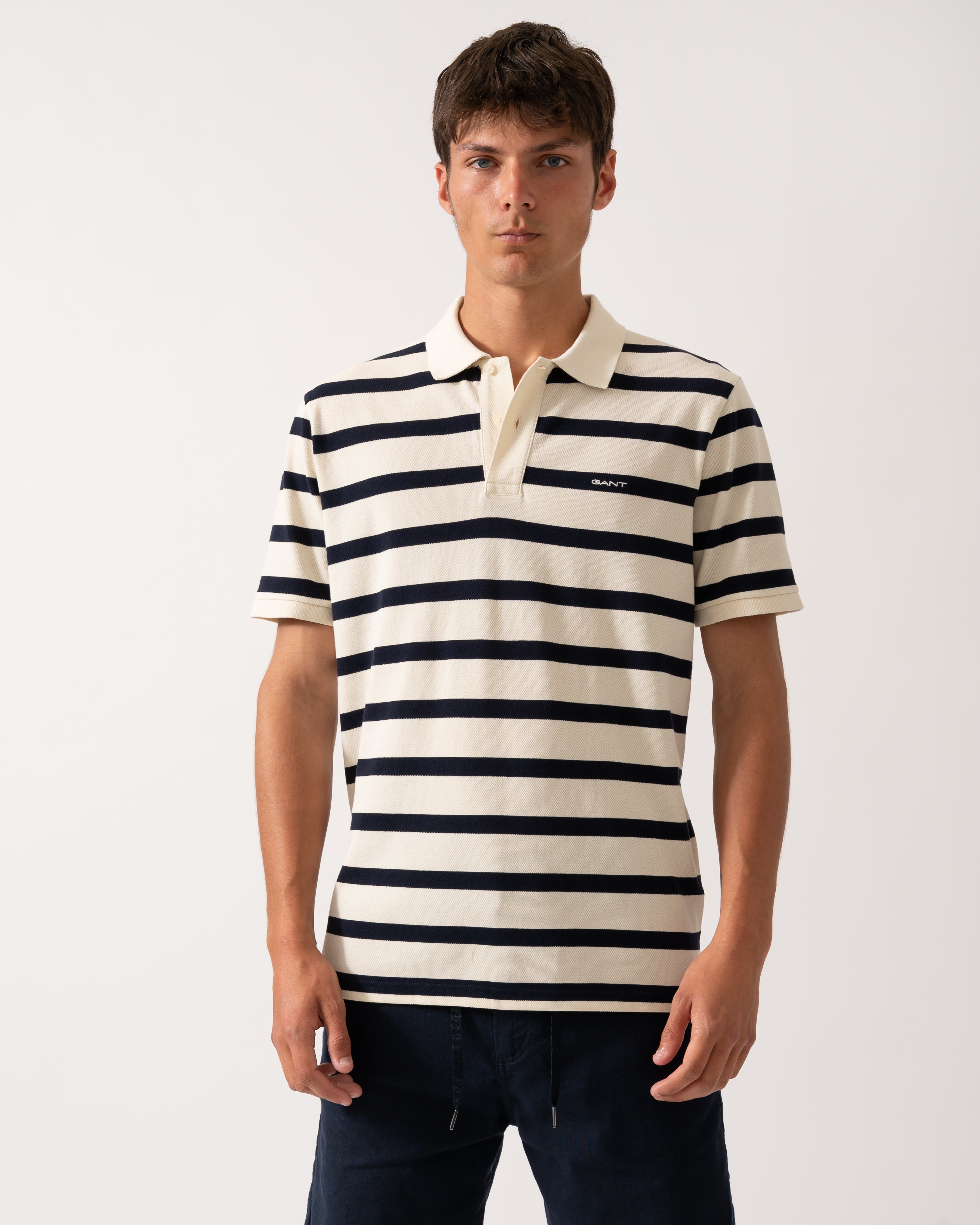 Gant Mens Striped Polo Shirt in Ivory Cotton - Size Medium