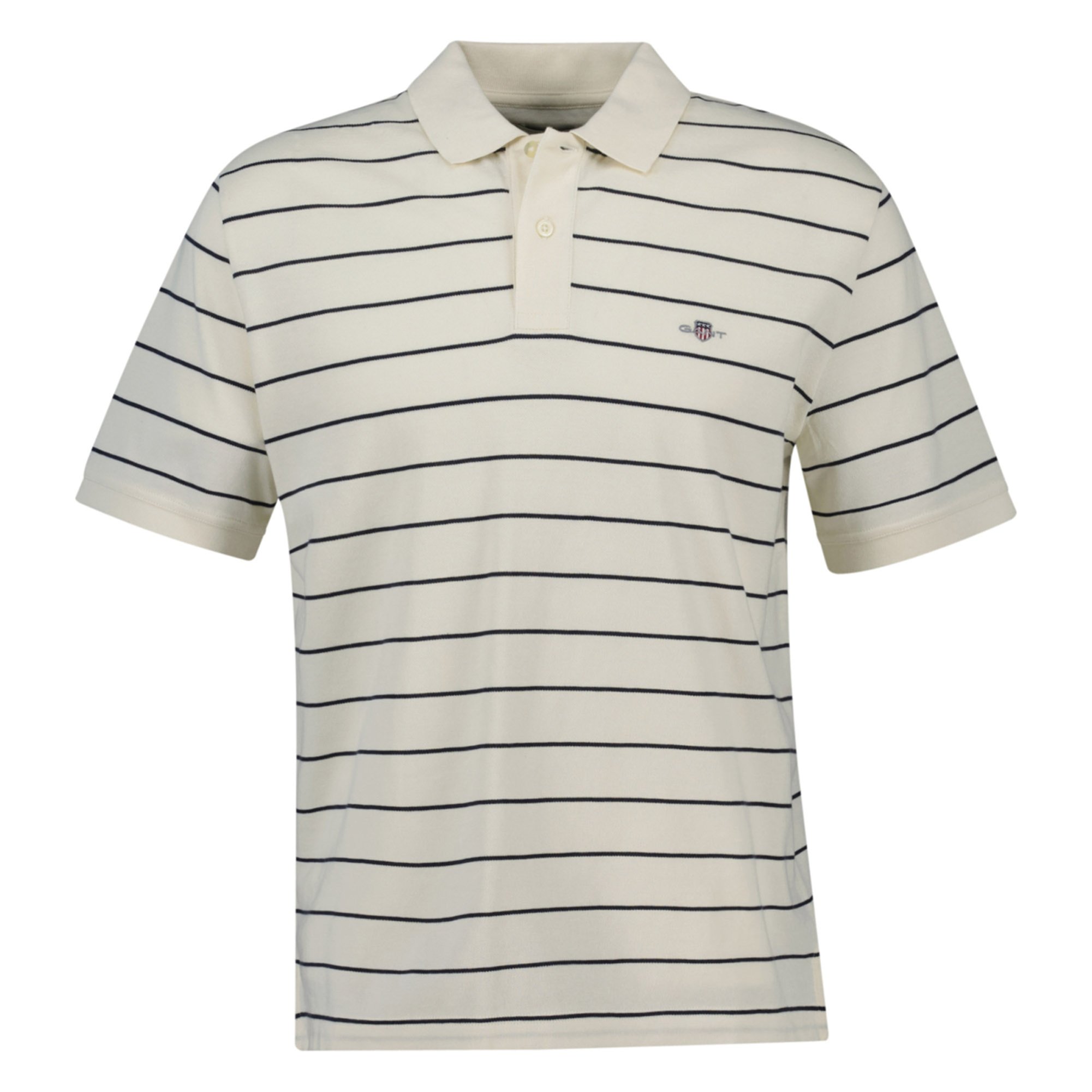 Gant Mens Striped Polo Shirt - Ivory Cotton - Size Medium