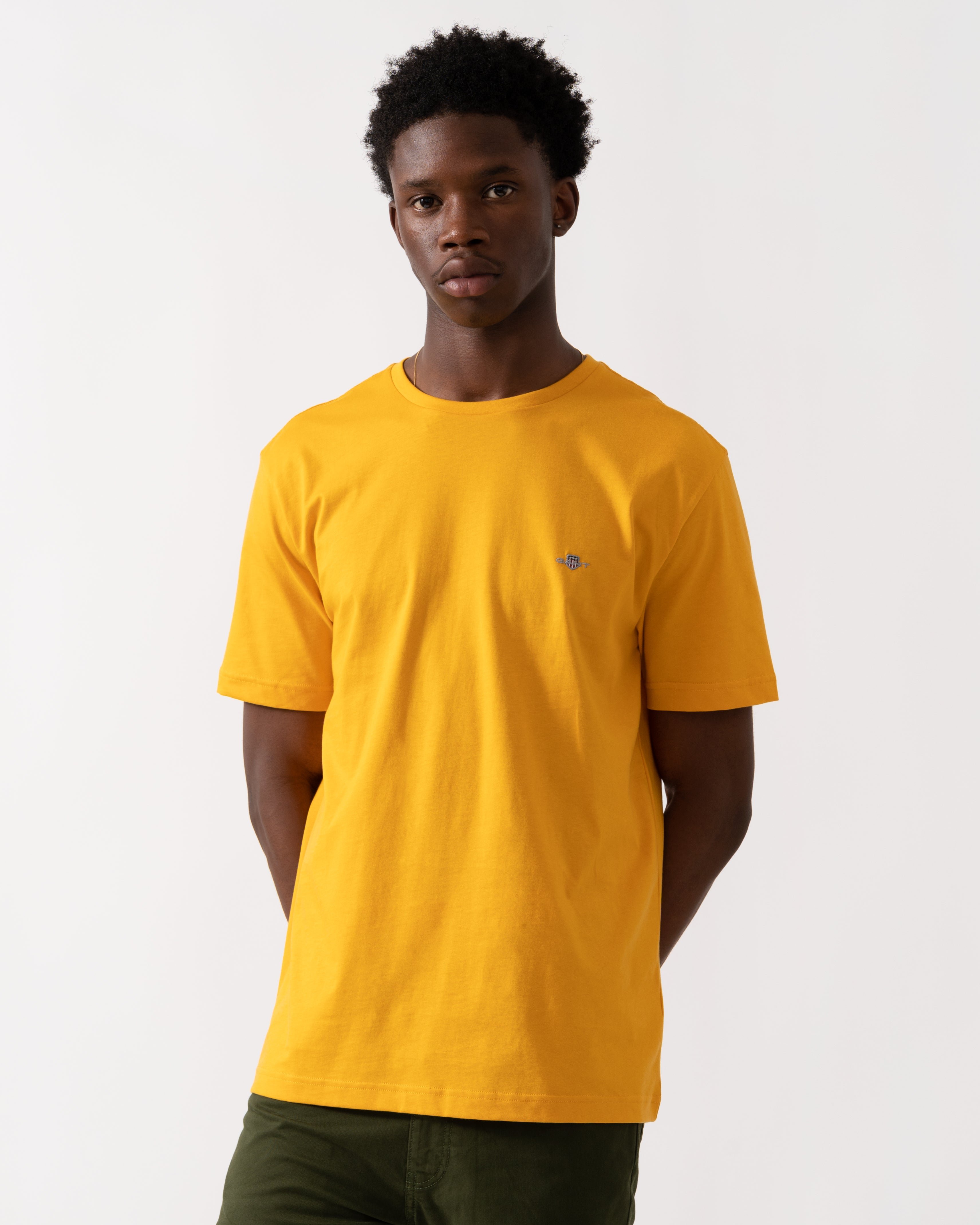 Gant Mens T-Shirt with Embroidered Logo in Yellow - Orange Cotton - Size X-Large