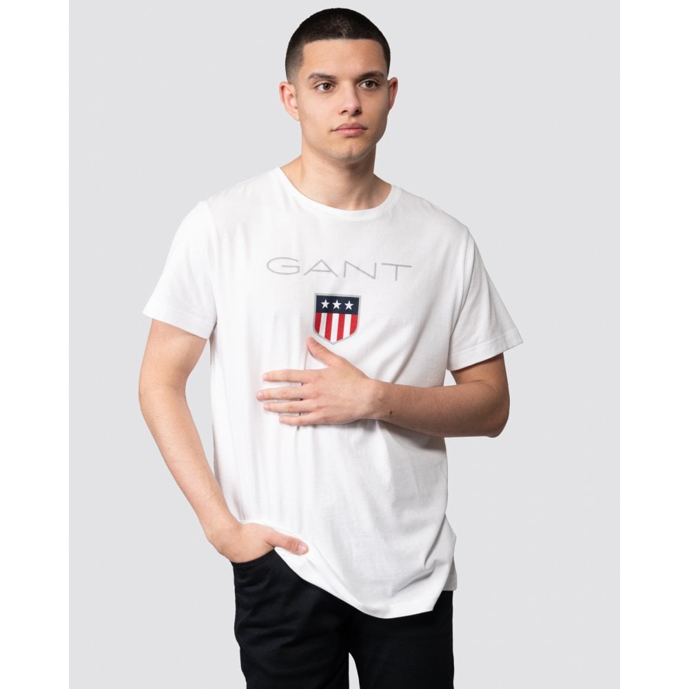 Gant Shield Mens T-Shirt - White Cotton - Size Medium