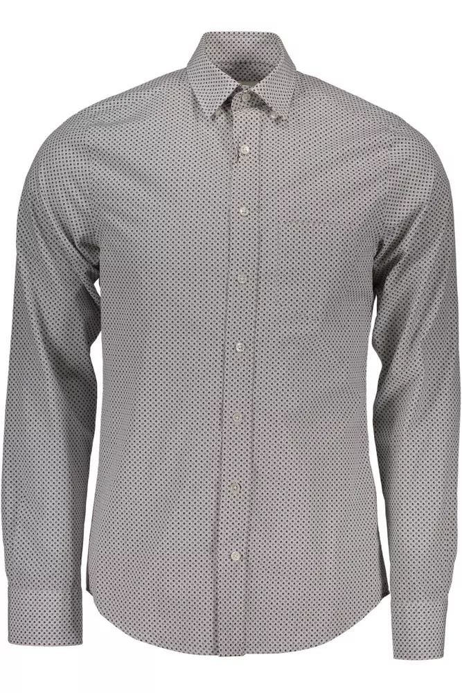 Gant Mens Contemporary Fit Shirt Small Allover Print - Light Grey Cotton - Size Small