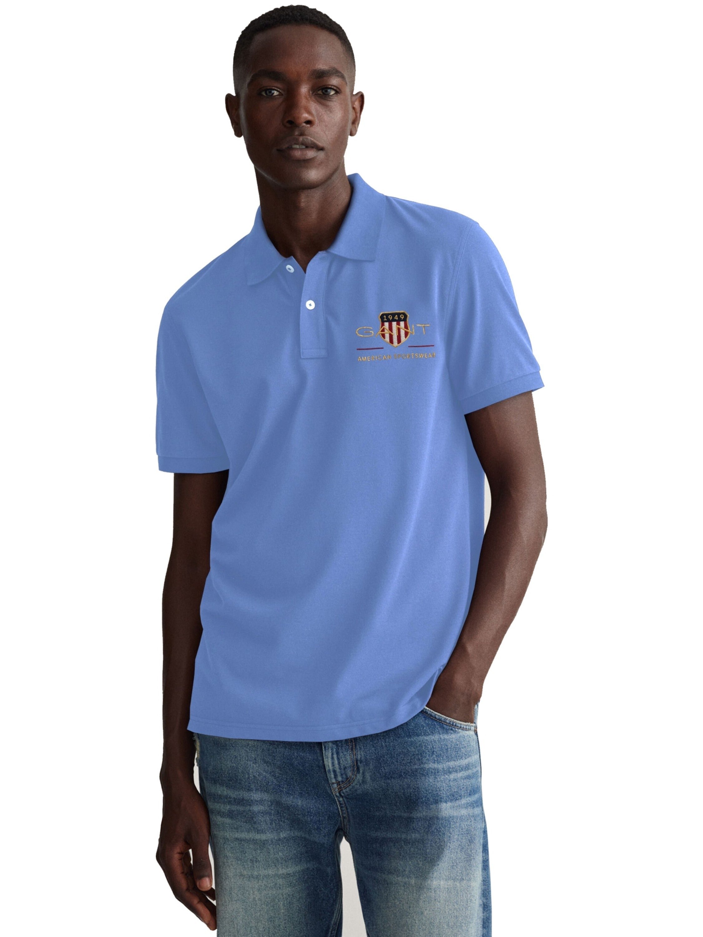 GANT Men's REG Shield SS Pique Polo Shirt, Capri Blue, Standard, Capri Blue, XS