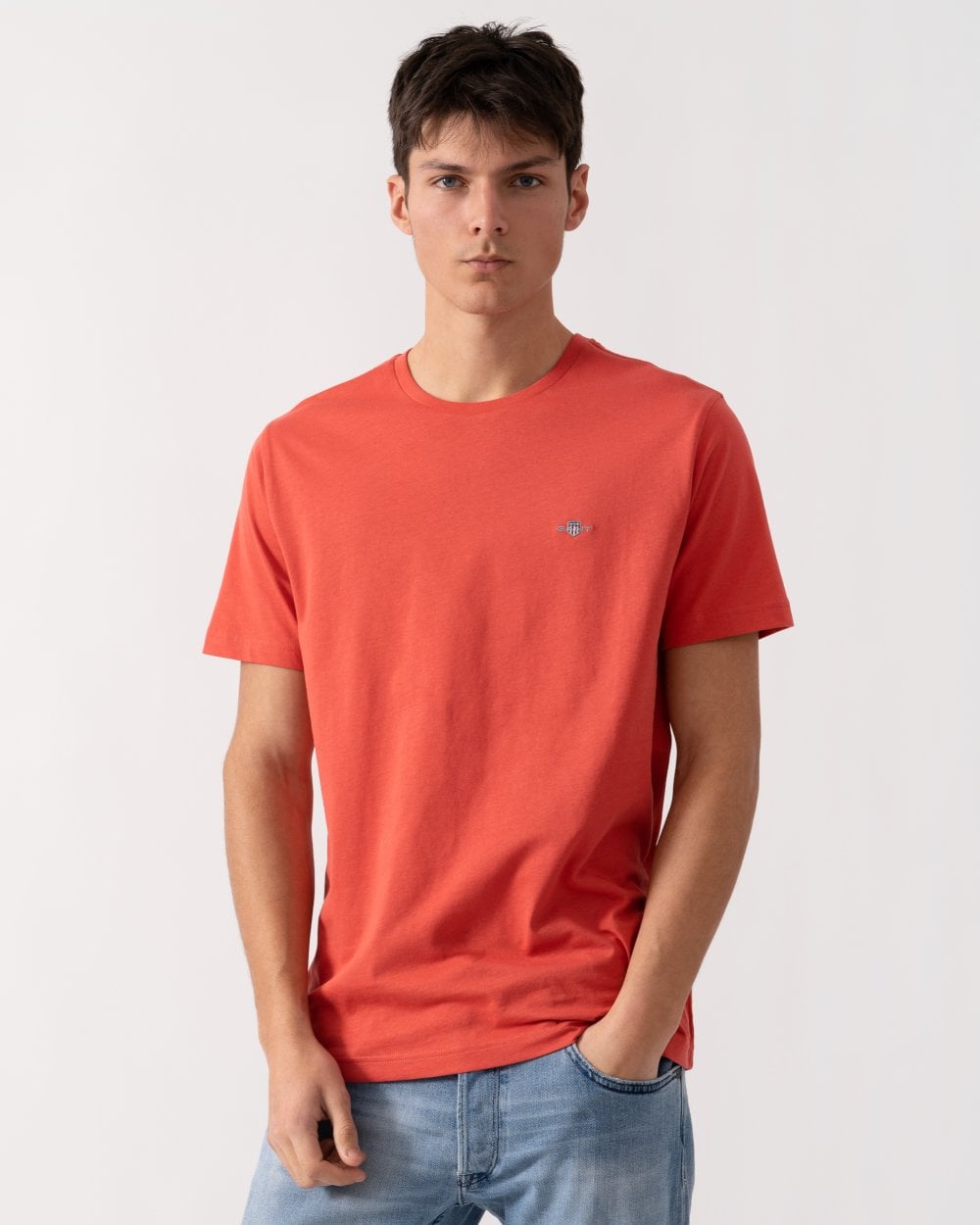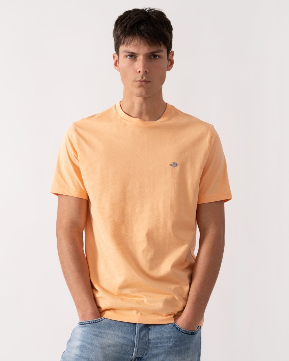 Gant Mens Regular Fit Short Sleeve Shield Logo T-Shirt - Orange - Size Medium