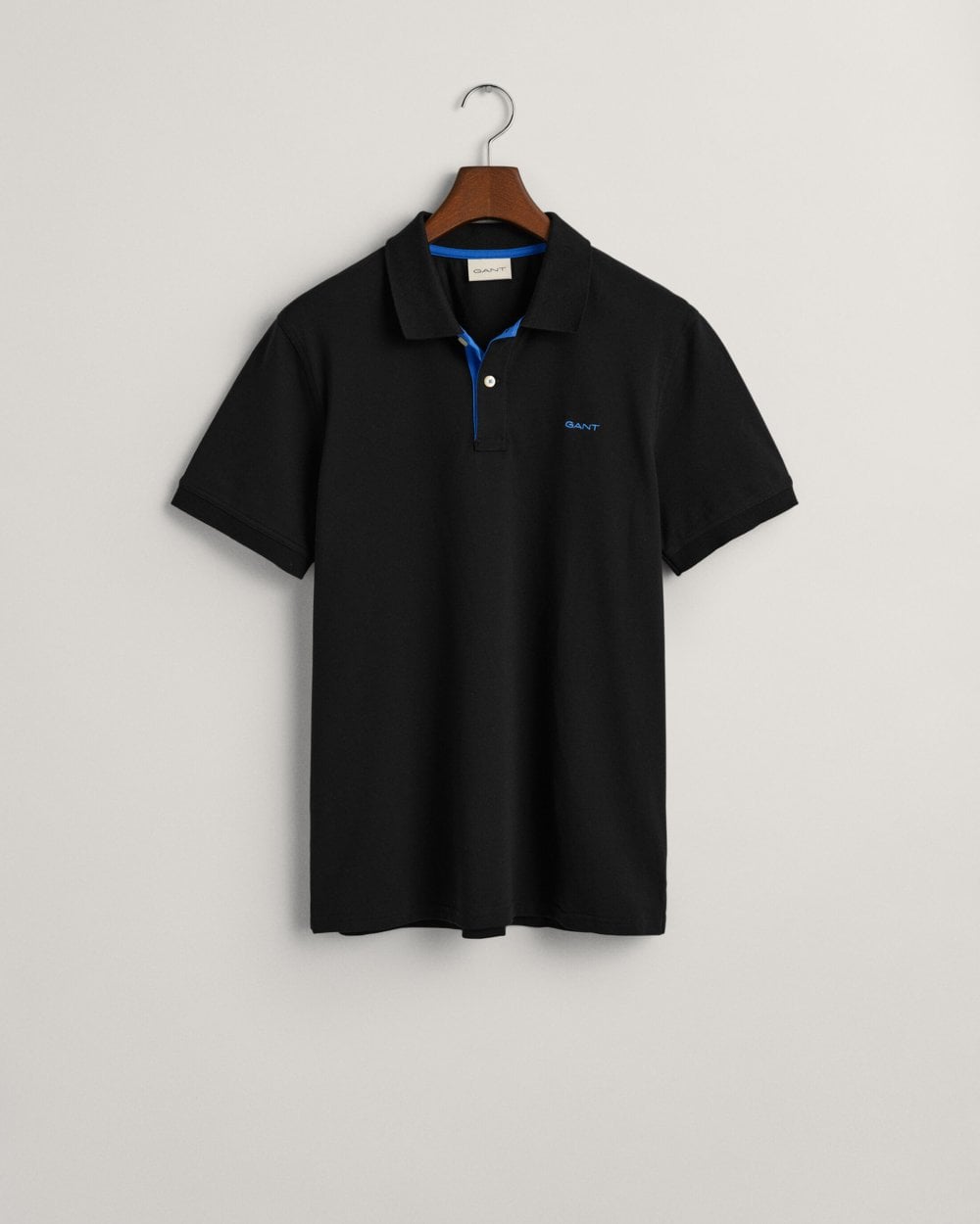 Gant Mens Regular Fit Short Sleeve Contrast Piqué Rugger - Black Cotton - Size X-Large