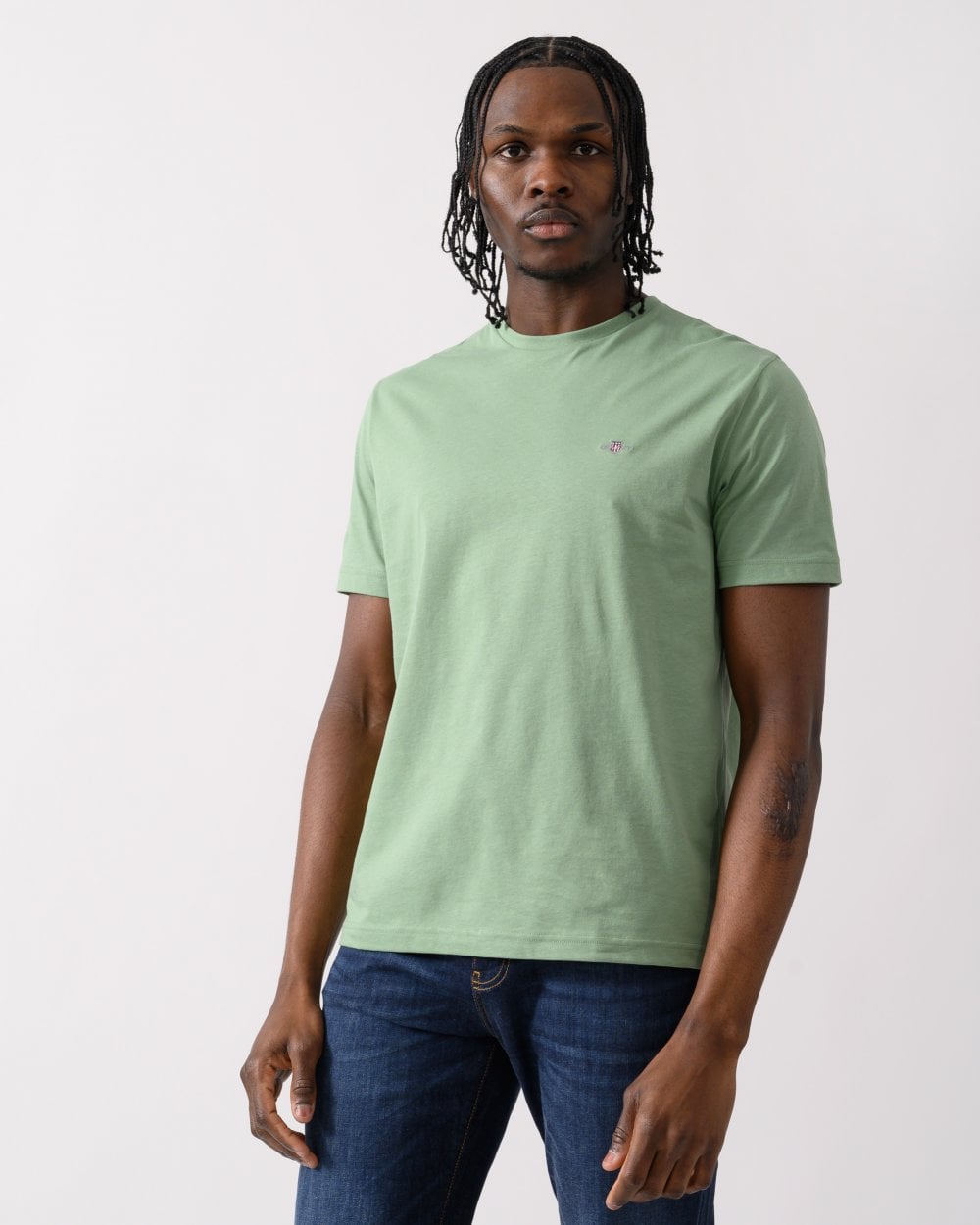 Gant Mens Regular Fit Short Sleeve Shield Logo T-Shirt - Olive - Size X-Large