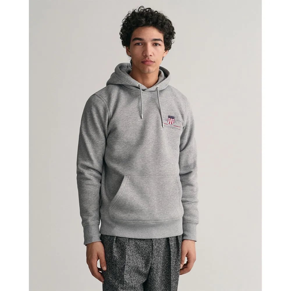 Gant Mens Regular Fit Shield Logo Pullover Hoodie - Melange - Size 4XL