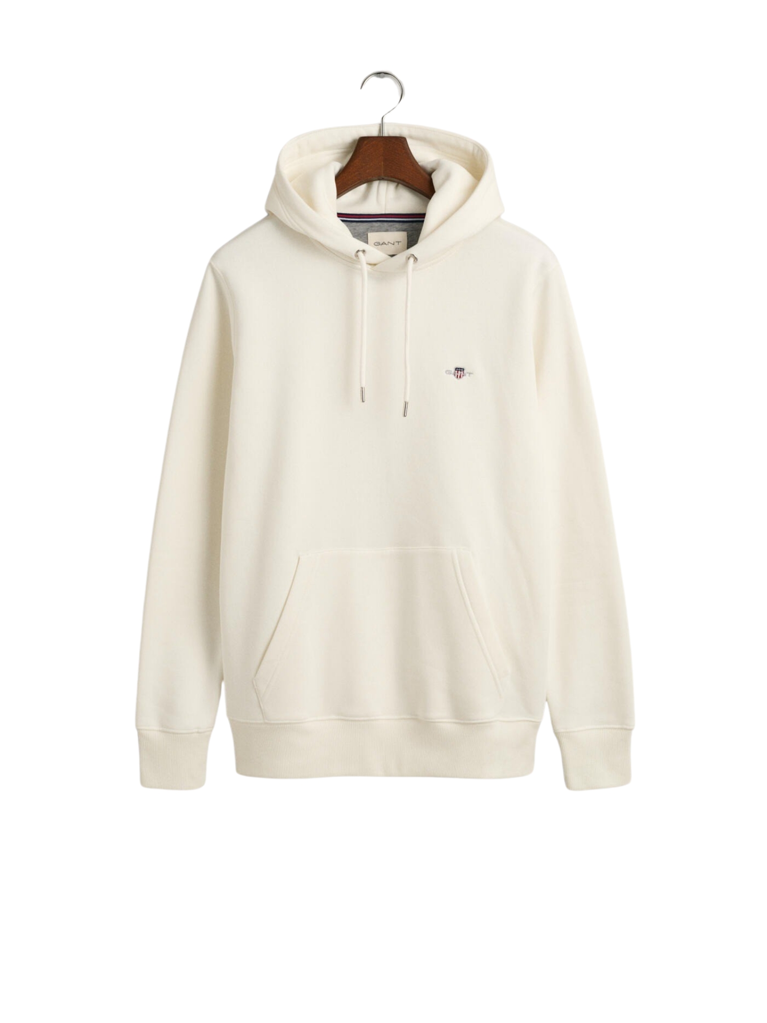 Gant Mens Regular Fit Shield Logo Pullover Hoodie - White Cotton - Size 2XL