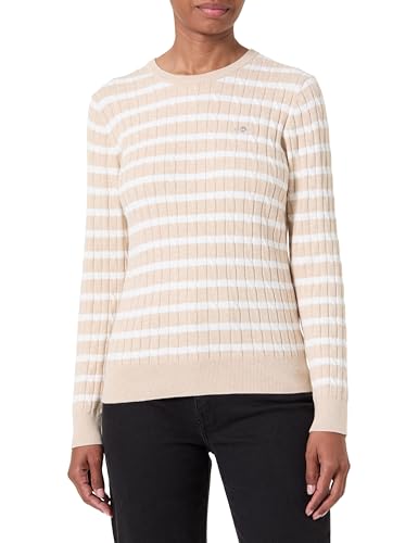 GANT Women's Stretch Cotton Cable Stripe C-Neck Pullover Sweater, Eggshell, M