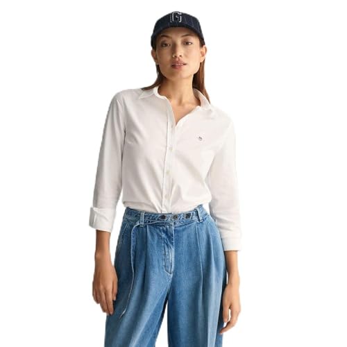 GANT Women's Slim Stretch Oxford Shirt Dress, White, 8
