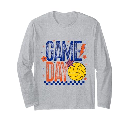 Game Day Water Polo Mom Season Retro Blue and Orange Long Sleeve T-Shirt