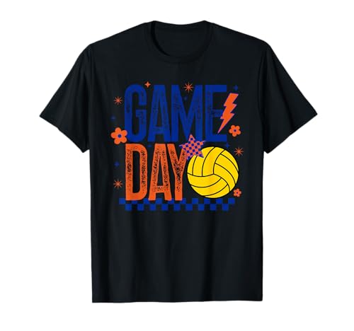 Game Day Water Polo Mom Season Retro Blue and Orange T-Shirt