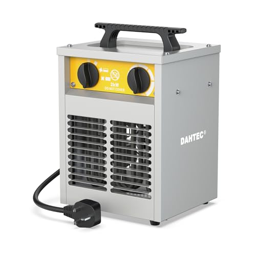 DAHTEC 2000W Enhanced Electric Fan Heater - Steel Casing - Industrial Portable Heaters - Thermostat & Overheat Protection - Ideal for Construction Site, Garage, Greenhouse