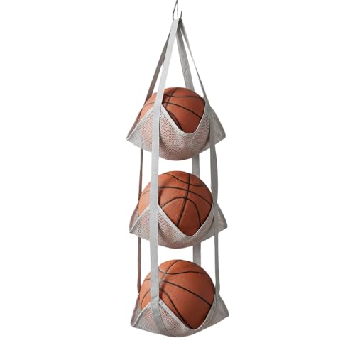 Basketball Organizer Rack, Sports Ball Holder Stand, Steel Frame with Adjustable Hooks, Garage Gym Equipment Storage Solution, Multi-Ball Display, Space Saving Design for Home Gym Use