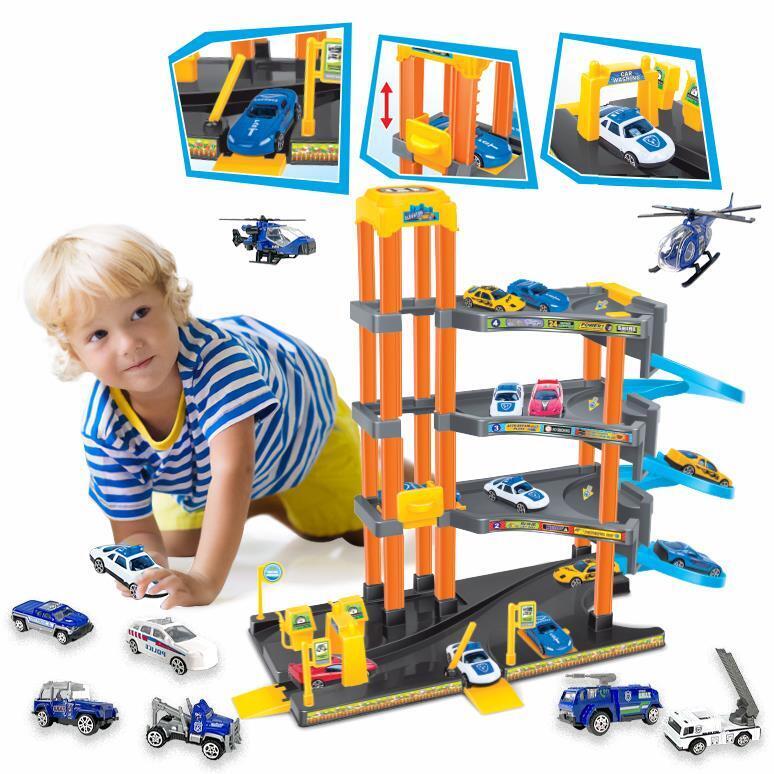 Children's 4-story Parking Garage Playset Traffic Signs Maintenance Station Cars