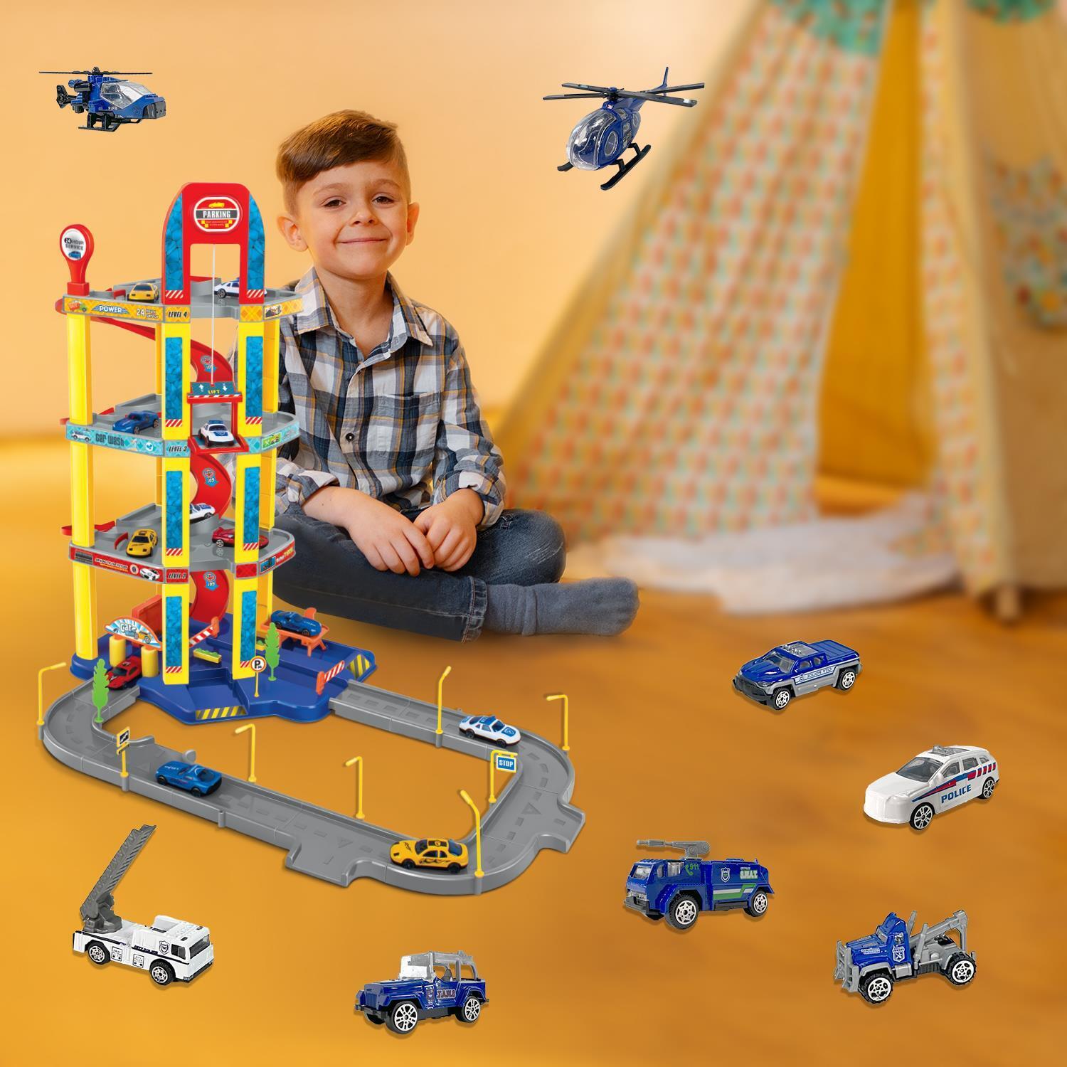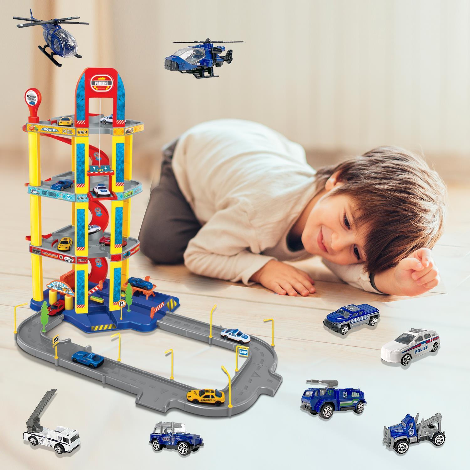 Kids Set 4-Level Parking Garage Playset 12 Vehicles Multi-Level Educational Toy