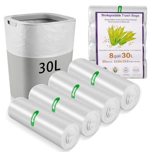 80 x 30 Liter Bin Bags, 23.6 * 25.6 in/8Gallon Food Waste Bags 4 Roll Kitchen Bin Liners Food Caddy Bags Caddy Bin Liners for for Office Bathroom Kitchen Garbage Bin(White)