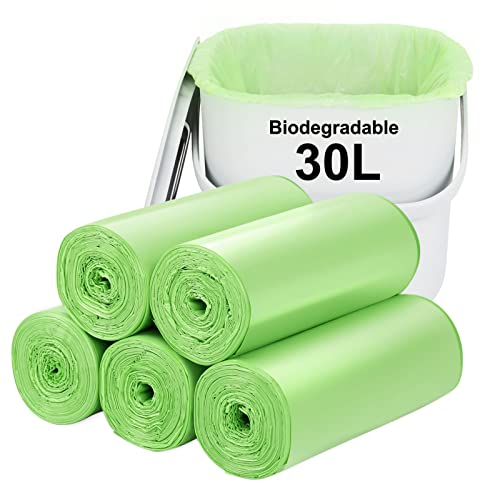 Biodegradable Trash bags 100PCS, Aievrgad 8Gallon/30L middle Garbage bags/For kitchen Bin. Bin Liner/Trash/rubbish Bags, 100% Recycled,Tough, degradable, Compost Bags for Food/household-Green