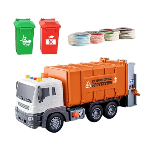 BunnyJOY Garbage Truck Toy with Bins, Interactive Trucks with Sound and Light, Educational Toy Vehicle Playset for 3+ Year Old, Waste Lorry, Gift for Boy Girl Kid 4 5 6 7 8 Year old, Orange