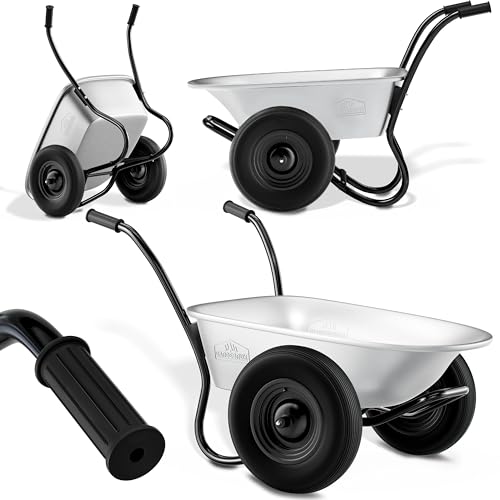 GARDEBRUK® Heavy Duty Wheelbarrow 100L | 2x Pneumatic Twin Tyres | 150KG Max Capacity | Steel Rim | Durable Garden Trolley for Transporting Grass Seed, Garden Tools, Compost, Mulch, Gravel | Silver
