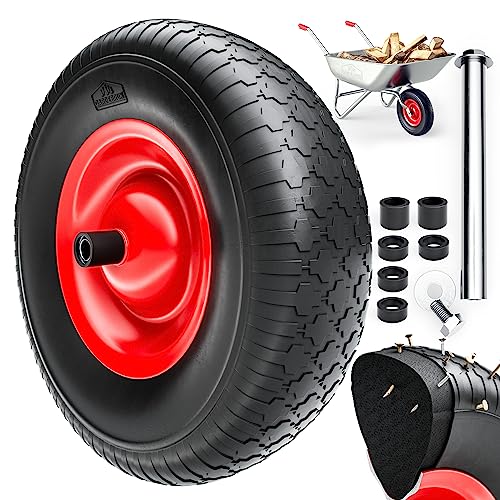 GARDEBRUK® Wheelbarrow Wheel Replacement | 15' Solid PU Rubber Tyre | Puncture-Proof | 4.80/4.00-8 | 390mm Diameter | 95mm Wide | 200kg Capacity | Red Black