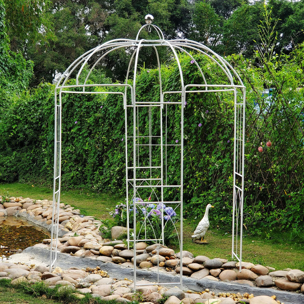 Heavy Duty Garden Arch Metal Arbor Trellis For Climbing Plants, Rust-Resistant Powder Coated, For Backyard, Lawn, Ceremony, Party, Wedding Decor(White,W260 X H230cm)