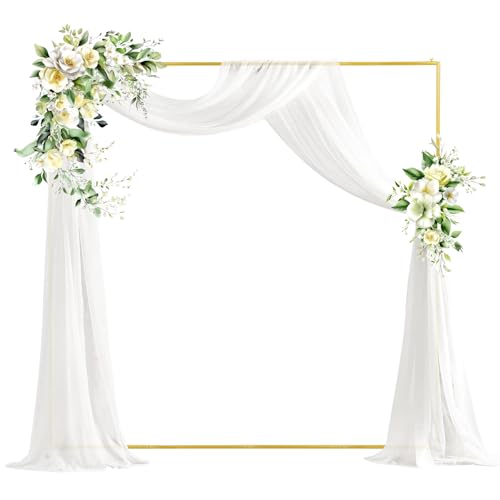 PlusFive Square Balloon Arch Stand, 6.6x6.6 FT Gold Wedding Arch, Garden Arbor Garden Arches Metal Arch Backdrop Stand for Ceremony Party Birthday Bridal Baby Shower Anniversary Background Decoration