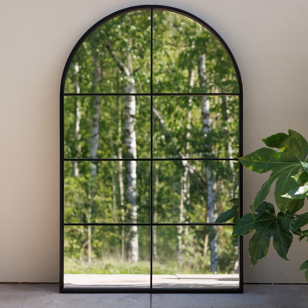 Primrose Pointed Arch Garden Mirror Metal Frame Glass Window Illusion 170cm