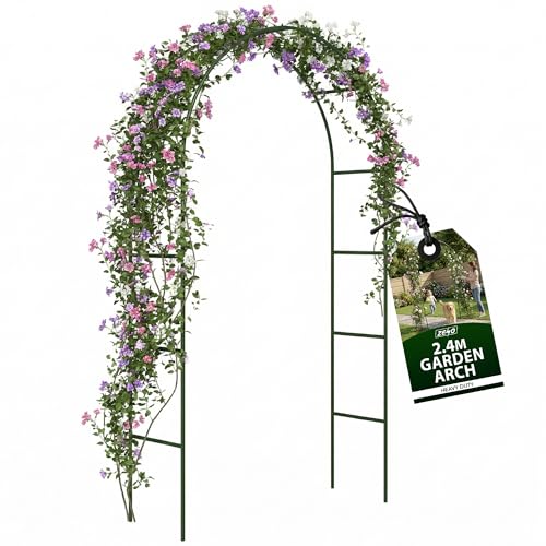 ZENO Garden Arch 2.4M | Heavy Duty Metal Garden Arch | Green Garden Frame Arch for Climbing Plants | Garden Arches for Outdoor, Backyard, Lawn, Patio, Courtyard, Wedding Decorations