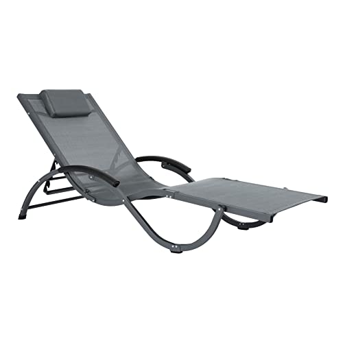 Jarder Siena Folding Sun Lounger - Adjustable Aluminium Frame Outdoor Chair Garden Sun Bed - Grey