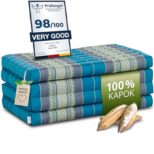 livasia Sustainable kapok mattress - 79x43x3.1″ - Guest mat, wide, Folding mattress, Ecological yoga mat, Folding guest bed, Sun lounger for garden & balcony (Blue)