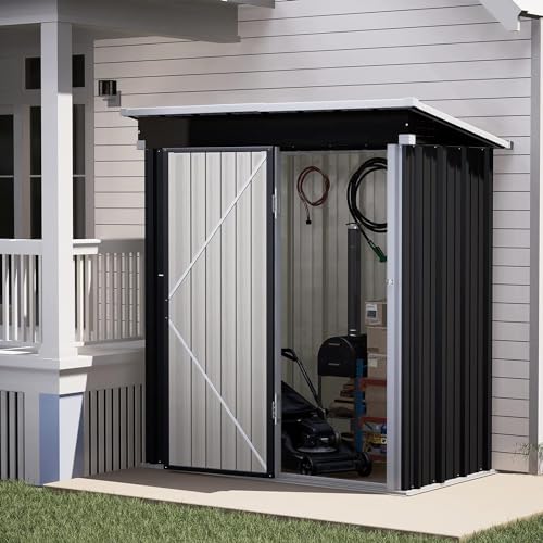 UDPATIO Metal Storage Shed 5x3 FT - Waterproof Galvanized Steel Garden Storage for Firewood, Garbage Can, Tools, Lawnmower, Bike - Lockable Door for Backyard Patio, Dark Grey