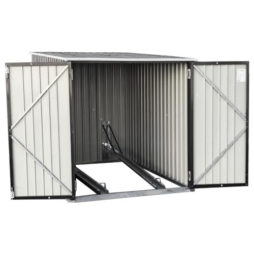 Panana Outdoor Shed Garden Storage Box Shed Bike Metal Pent Tool Shed House Galvanized Steel Can Put 3-4 Bicycles, W225xD88xH125cm (GSGD05GN01000003-FOMX)
