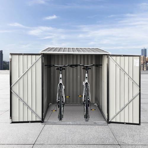 Panana Metal Garden Shed Storage Bike Shed Pent Tool Shed House Galvanized Steel 2 Removable Gravity Locking Racks Can Put 2 Bicycles (2R)