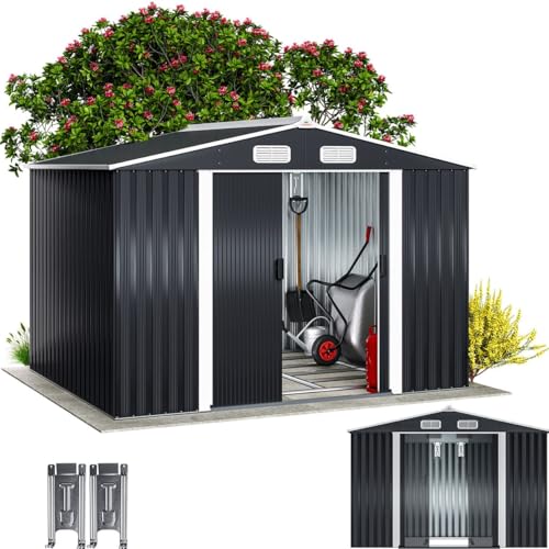 8.8 x 4.7ft Motorcycle Storage Shed Lockable Steel Garden Bike Shed, Charcoal Black